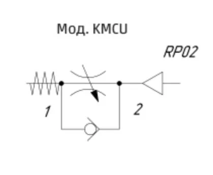 Скорость двухстороннего цилиндра регулируется дросселями Мод. KMCU/KMCO свободно пропускающие воздух в полость цилиндра и дросселирующими выхлоп из него. Если дроссели удобнее располагать на распределителе, а не на цилиндре, следует использовать Мод. KMVU